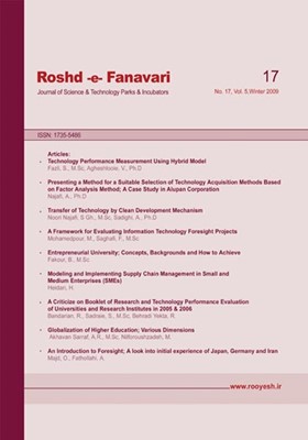 الکلمات المفتاحية: پروژه آينده¬نگاري, فناوري اطلاعات, كارت امتيازي متوازن, ارزيابي عملكرد پروژه¬ها, شاخص,