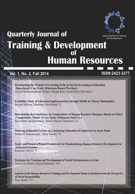هدف پژوهش حاضر ارائه چارچوب استانداردسازی توسعه منابع انسانی در نظامهای آموزشی است که به روش توصیفی از نوع پیمایشی اجرا گردید. جامعه آماری کلیه اساتید و مدرسین رشتهها و گرایشهای علوم تربیتی واحدهای دانشگاه آزاد اسلامی منطقه 12 کشوری به تعداد 255 نفراست و نمونه آماری نیز مساوی جامعه آماری، که با استفاده از روش سرشماری انتخاب گردید. ابزار جمعآوری دادهها پرسشنامه محقق ساخته میباشد. نتایج به دست آمده نشان دادکه ، چارچوب استانداردسازی توسعه منابع انسانی دارای چهار بعد و بیست و سه مؤلفه به شرح زیر میباشد. بعد تعهد، شامل: تعهد علنی جهت توسعه افراد در تمامی سطوح، آگاهی کليه کارکنان از چشمانداز و اهداف کلان، تدوين طرح جامع کسب و کار، تدوين نيازهای آموزشی و توسعه کارکنان، آگاهی کليه کارکنان از نقش خود در موفقيت سازمان، ارتباط مديريت ارشد با نمايندگان کارکنان و ارتباط مديريت ارشد با نمايندگان کارکنان میباشد. بعد طرحریزی، شامل: تدوين منابع لازم آموزش و توسعه، ارزيابی نيازهای آموزش و توسعه با توجه به اهداف، طراحی فرايند ارزيابی نيازهای آموزش و توسعه، تعيين مسئوليت توسعه افراد در سراسر سازمان، صلاحيت مديران جهت توسعه کارکنان، تناسب اهداف و استانداردهای توسعهای و پيوند اهداف آموزشی به استانداردهای خارجی است. بعد اقدام، شامل: معارفه کارکنان جديد و تعيين نيازهای آموزش و توسعه آنها، توسعه مهارتهای کارکنان متناسب با اهداف، آگاهی کارکنان از فرصتهای توسعه، تشويق کارکنان در تعيين نيازهای آموزشی و نحوه تأمين آنها، اقدامات مؤثر جهت تحقق اهداف آموزش و توسعه و اقدامات مؤثر جهت تحقق اهداف آموزش و توسعه میباشد. بعد ارزیابی، شامل: ارزيابی نقش توسعه کارکنان در اهداف، ارزيابی نتايج آموزش و توسعه در سطوح فردی، گروهی و سازمانی و آگاهی مديريت ارشد از هزينهها و منافع توسعه افراد است.