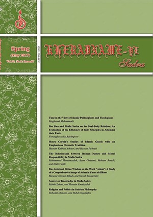One of the most important philosophical problems which has been discussed and explored in both physics and theology is time. A few theologians have considered time to be a non-existent entity and an illusion. However, those theologians and philosophers who view time as an existential entity have presented various theories regarding the way of its existence and its truth. A group of theologians believe that time is an illusory thing, that is, it lacks an objective referent in the outside but has an origin of abstraction. Nevertheless, those who attribute an objective existence to time can be divided into two groups: some consider it to be an immaterial substance, and some others believe that it is a material and corporeal substance. However, the dominant theory holds that time enjoys an objective existence under the category of “quantity”; in other words, it is a “non-static continuous quantity” which is equal to the amount of motion in a sense, and the number of motion in another sense. Time measures the amount of motion over a specific distance. In fact, the relation of time to motion is similar to the relation of mathematical body to physical body. As a mathematical body grants determination to the ambiguous dimensions of a physical body, time also determines the amount of motion. Among all thinkers, Mulla Sadra treats this issue more meticulously and introduces time as the fourth dimension of material existents. This paper analyzes the various views of Muslim philosophers and theologians regarding time.